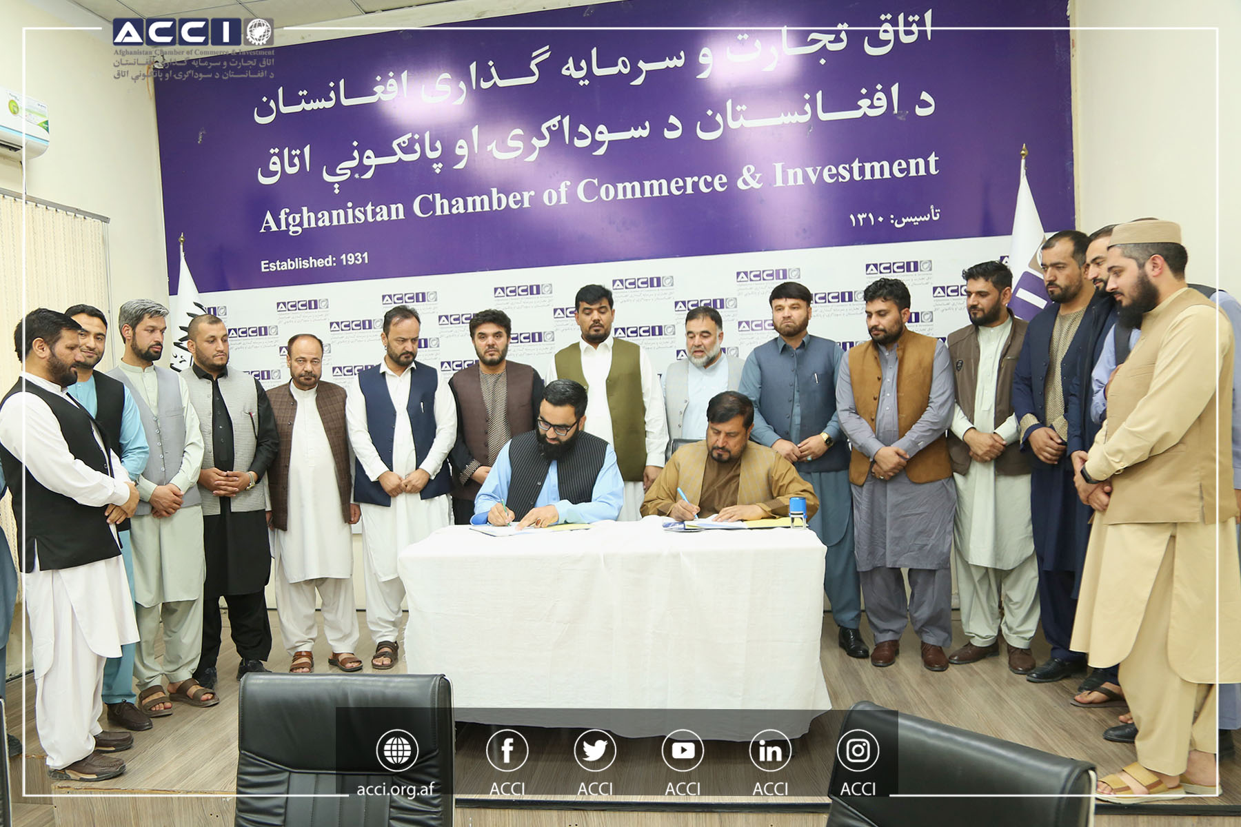 این قرار داد، ازجانب محترم محمد ولی امینی رئیس هیات عامل اتاق تجارت و سرمایه گذاری افغانستان و محترم مولا رئیس مرکز نمایشگاه ملی و بین المللی افغانستان، در حضور داشت محترم الحاج عنایت الله صدیق زی معاون خدماتی اتاق تجارت و سرمایه گذاری افغانستان، در تالار کنفرانس های اتاق به امضاء رسید.