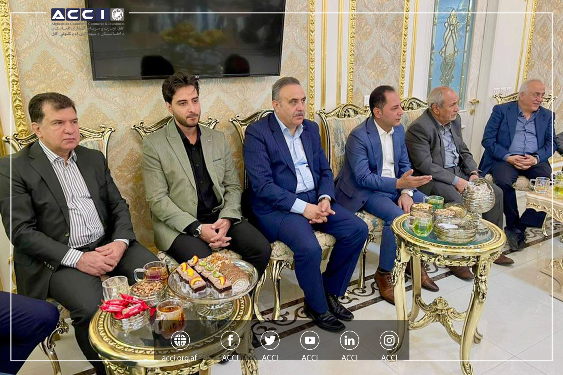 محترم میراجان سلیمانخیل معاون پالیسی و روابط با حکومت اتاق تجارت و سرمایهگذاری افغانستان، با محترم مهندس سیادت رئیس اتاق تجارت مشترک ایران -افغانستان و جمعی از تاجران افغان مقیم مشهد ملاقات کرد.