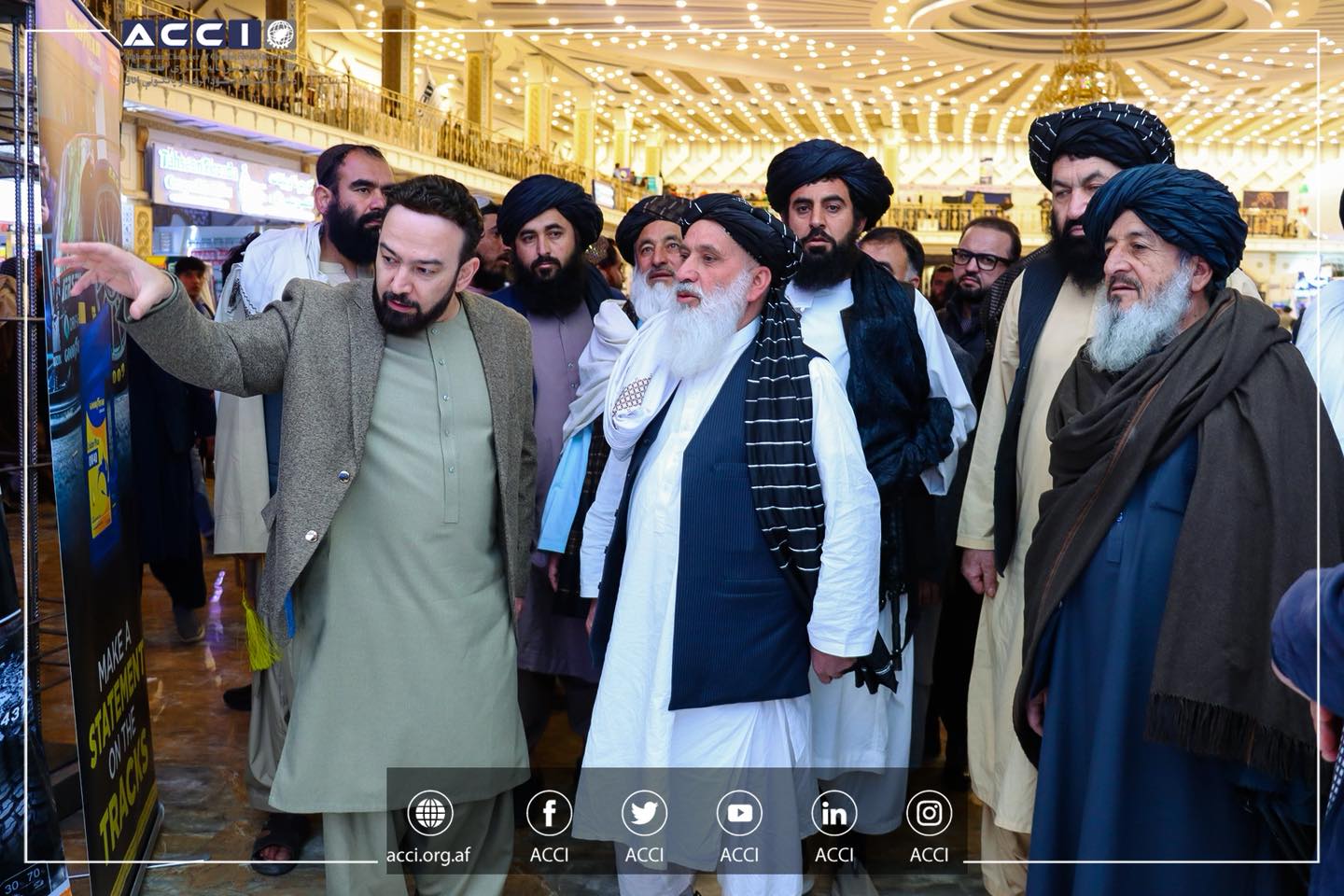 به سلسله دیدار شخصیت های ملی و بین المللی از چهارمین نمایشگاه ملی و بینالمللی امام ابوحنیفه (رح)، در ششمن روز این نمایشگاه، تعدادی از مقامات امارت اسلامی افغانستان، از جمله، محترم داکتر ملا عبدالواسع رئیس عمومی دفتر ریاست الوزراء، محترم احمدالله زاهد معین وزارت صنعت و تجارت، محترم مولوی احمد جان بلال رئیس عمومی شرکت های امارتی و محترم مولوی احمدالله وثیق رئیس عمومی المپیک، تربیت بدنی و ورزش، در حضورداشت محترمان: محترم الحاج حبیب الله عمری معاون امور اجتماعی و فرهنگی هیئت مدیره، الحاج آرین زلگی عظیمی معاون سرمایه گذاری اتاق، الحاج عنایت الله صدیق زی معاون خدماتی اتاق، حاجی خلیل الله خیر خواه رئیس مالی هیئت مدیره و محمد ولی امینی رئیس هیئت عامل اتاق؛ از چهارمین نمایشگاه ملی و بینالمللی امام ابوحنیفه (رح) دیدن نمودند.