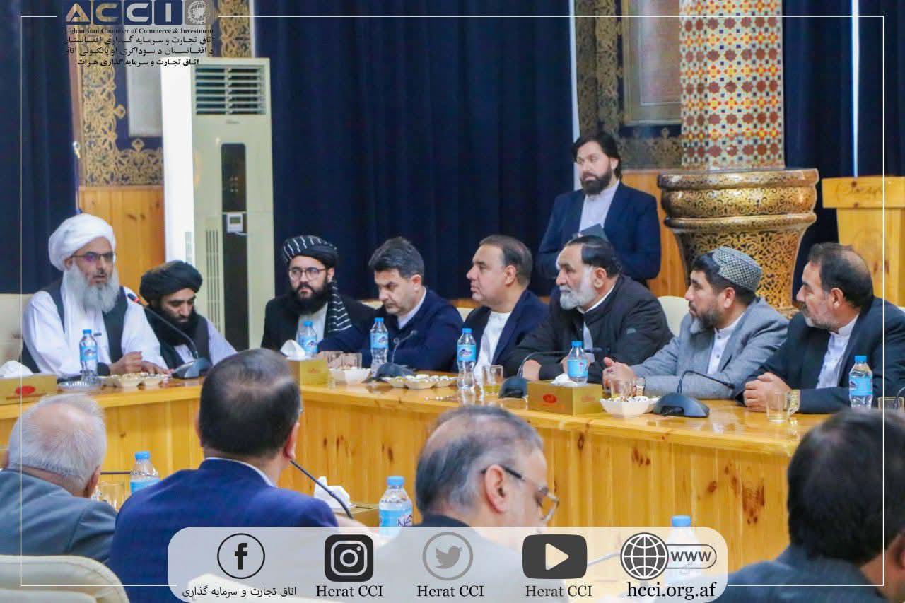 محترم الحاج فیض احمد خوافی، معاون ولایتی هیئت مدیره اتاق تجارت و سرمایهگذاری افغانستان، در حضور داشت محترم مولوی نوراحمد اسلامجار والی ولایت هرات محترم محمدیونس قاضی زاده عضو هیئت مدیره اتاق، در نشستی که در شهر هرات برگزار شد، با محترم غلام حسین مظفری والی ولایت خراسان رضوی جمهوری اسلامی ایران ملاقات کرده و هردو جانب روی تقویت همکاریهای اقتصادی، توسعه مناسبات تجارتی و تسهیل روند مبادلات میان افغانستان و ایران تأکید کردند.
