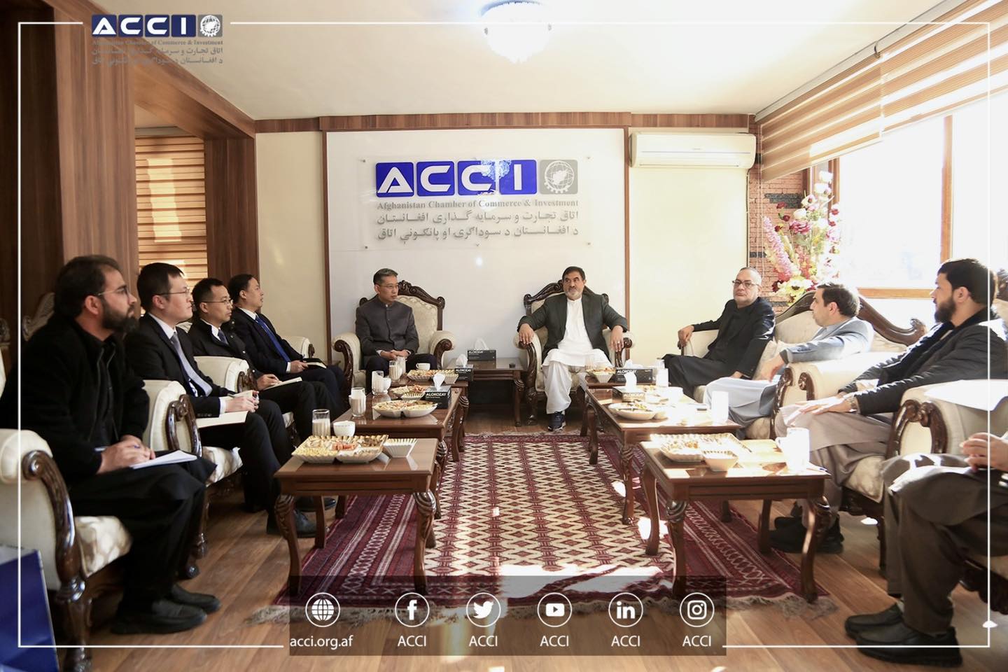 ملاقات رئیس عمومی و هیئت رهبری اتاق تجارت و سرمایه گذاری با سفیر جمهوری خلق چین در افغانستان