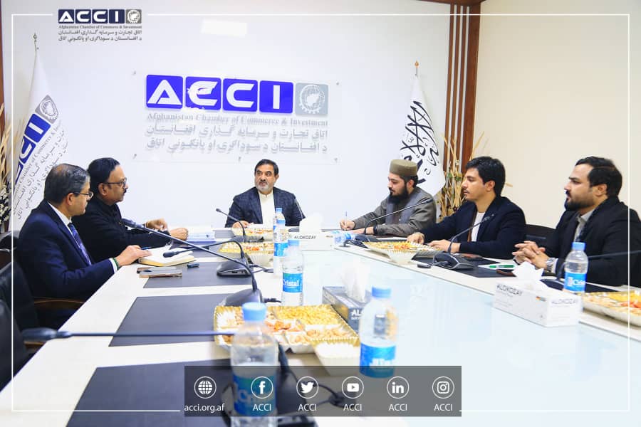 محترم الحاج سید کریم هاشمی، رئیس عمومی اتاق تجارت و سرمایه‌گذاری افغانستان، دور دوم جلسه تخنیکی پیرامون طرح ساخت پالایشگاه نفت در افغانستان را با متخصصین هندی یکی از شرکت های مشهور نفت و گار هندوستان برگزار کرد.