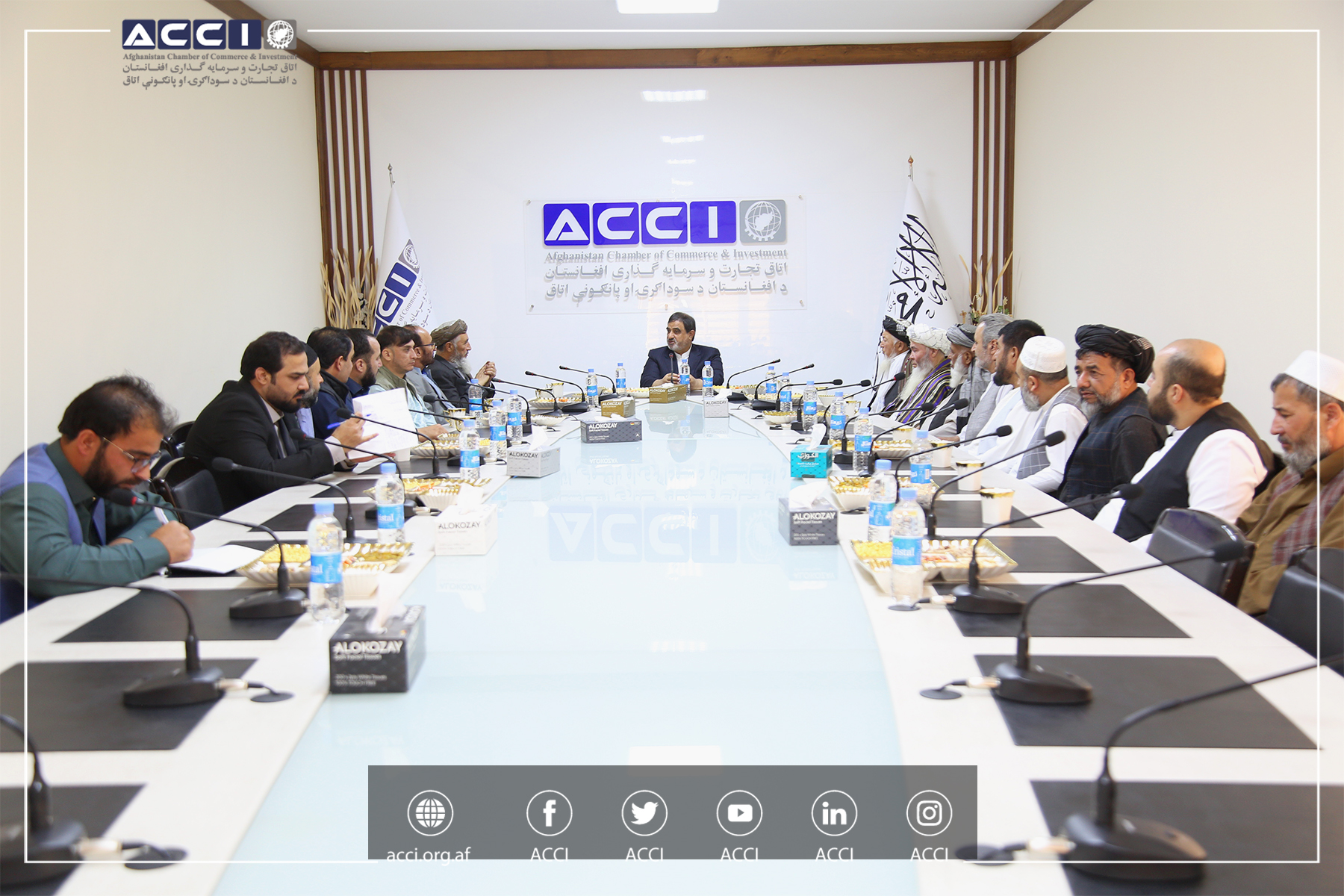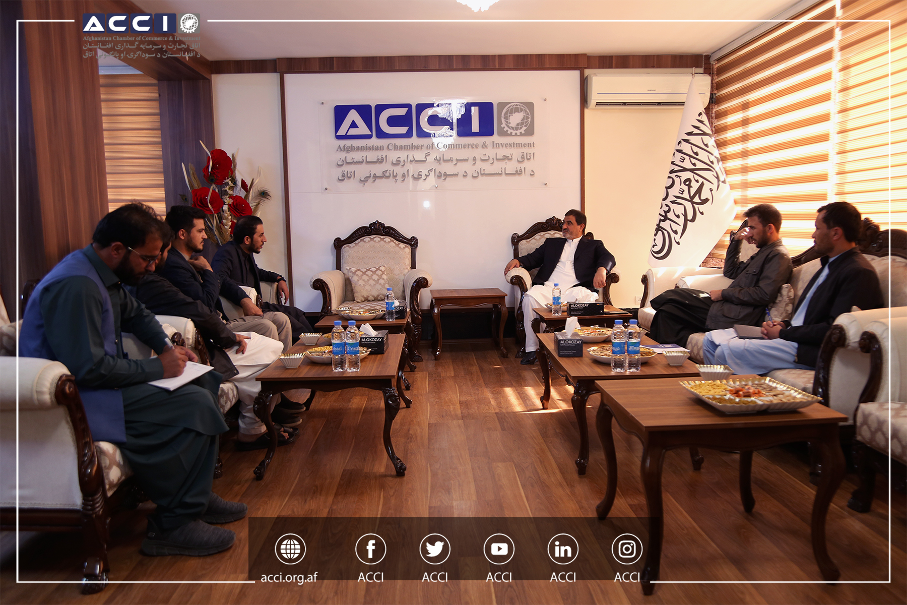 محترم الحاج سید کریم هاشمی رئیس عمومی اتاق تجارت و سرمایه گذاری افغانستان، با رئیس و بزرگان شورای مردم ولایت فاریاب مقیم شهر کابل، در دفتر ریاست عمومی اتاق ملاقات کرده و مشکلات ایشان را استماع نمود.