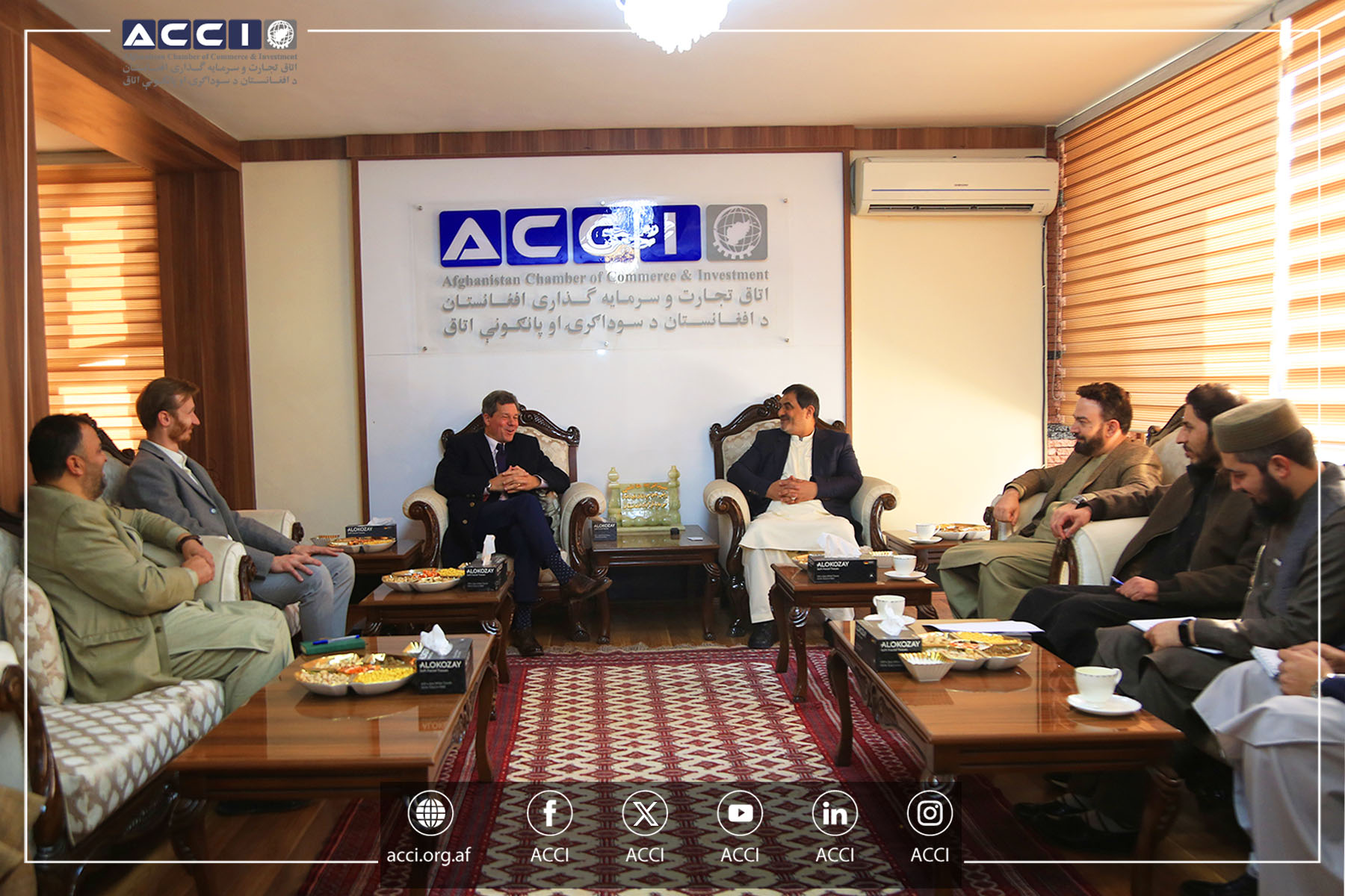 در این ملاقات محترمان الحاج آرین ذلگی عظیمی معاون سرمایه گذاری، عبدالظهور مدبر مشاور اتاق و عبدالمتین غالب مسئول دیپارتمنت روابط بین الملل هییت عامل اتاق نیز اشتراک داشتند.
